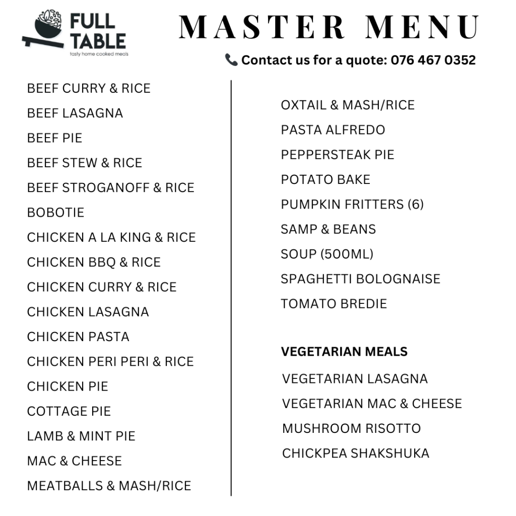 FULL TABLE MONTHLY SPECIALS Welcome to our monthly specials section! Ever wondered what specials we are running? Just pop back to this page where we keep you updated on all our current specials! Let's save you time & money this November. FULL TABLE CATERING MENU: